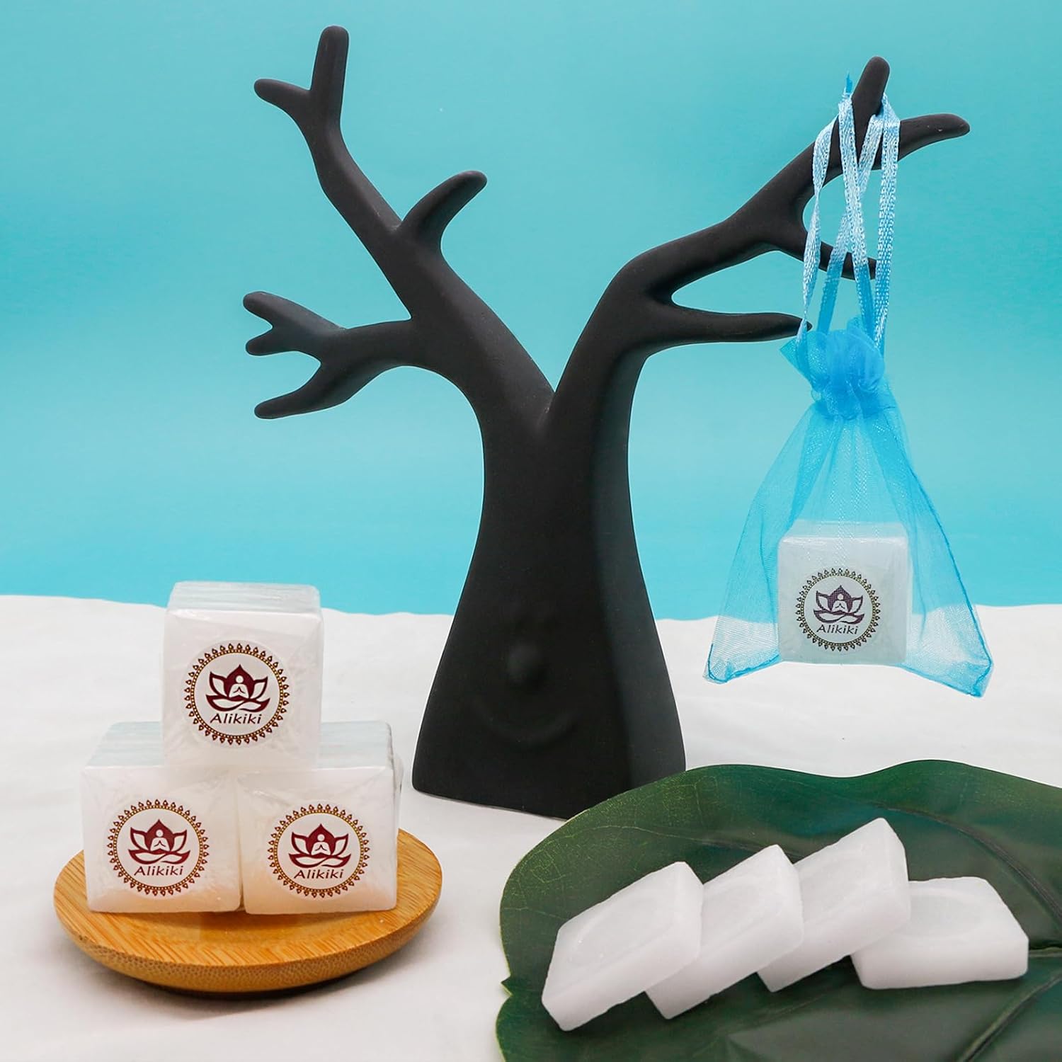 - Package Weight & Quantity: 300G (10 Ounce) - 64 tablets total in each color box with plastic seal. In addition, there are 4pcs small blue organza bags in each box, providing a stylish and portable option for carrying camphor tablets or put some of the camphor cubes in any place you need; and 1pc clear PVC bags for long term storage, preventing evaporation and ensuring its lasting freshness.
