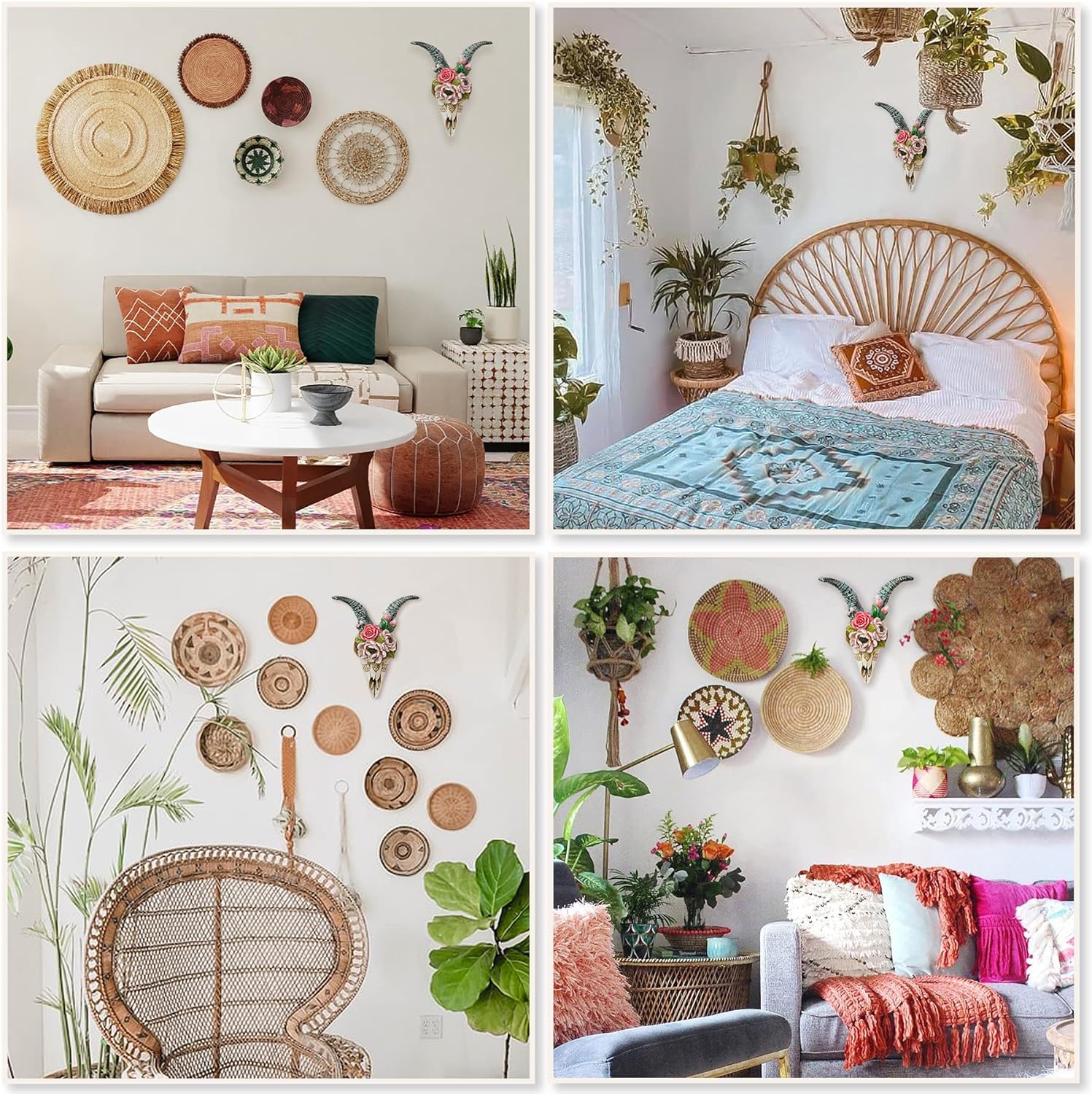 - WIDELY USED - This boho goat head wall hanging will be beautiful anywhere. Great for hanging in the living room, bedroom, bathroom, office, or a bar, recreation room, club, shop, prop arrangement, etc, to add an authentic southwest bohemian decorating style to your walls.