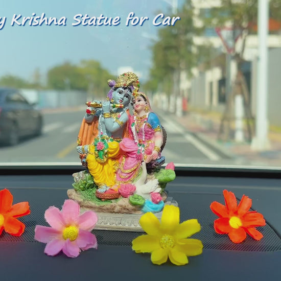 - Exquisite Craftsmanship Hindu Murti Pooja Item:This 3.5”H Radha & Krishna statue is meticulously designed by talented Indian artists, featuring vibrant hand-painted colors that bring the divine couple to life.This small Krishan and Radha couple statue comes with a 1-piece tear-able sticker for easy placement on car dashboards, allowing you to carry the blessings of Krishna and Radha wherever you go.