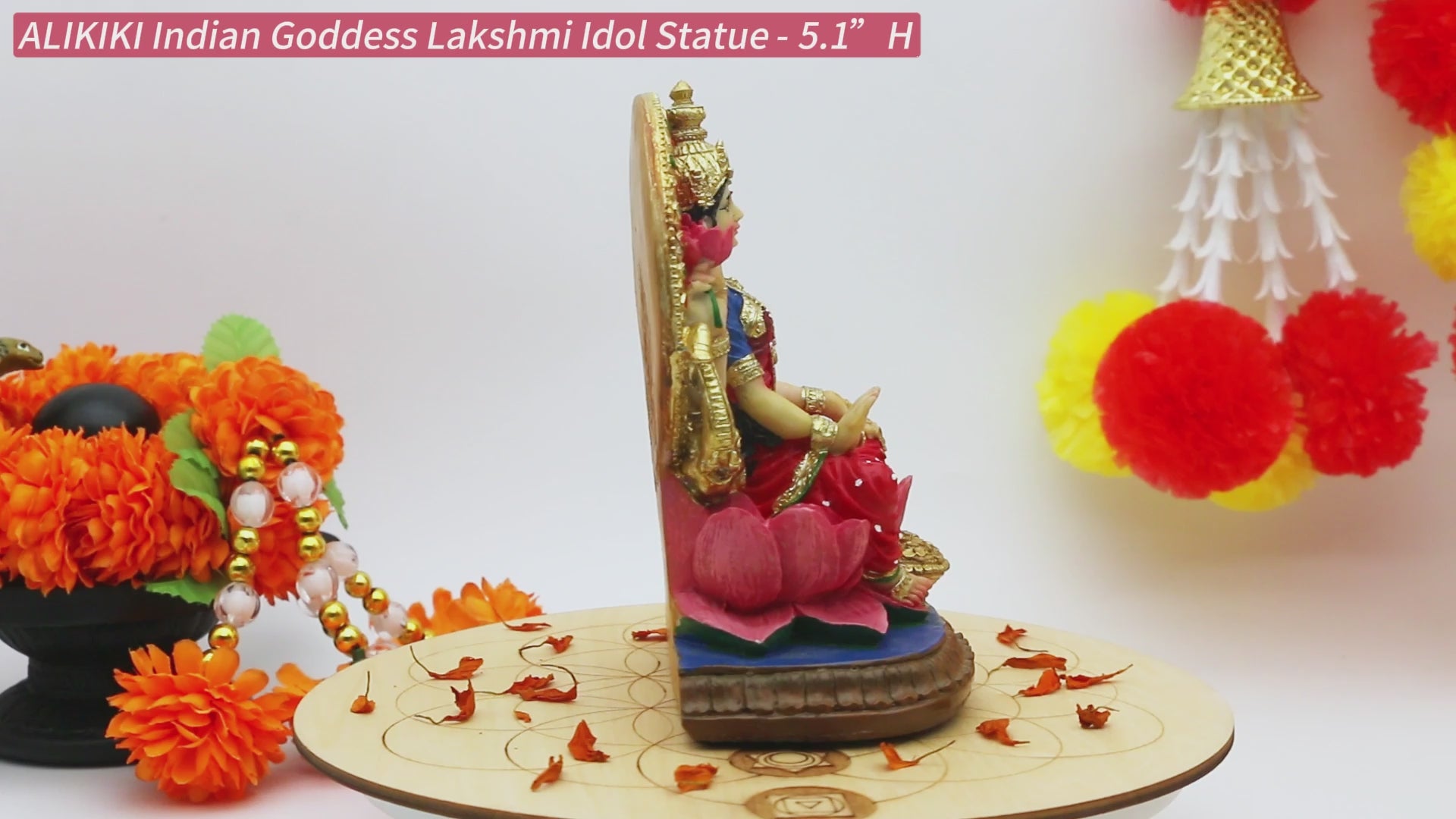 - Exquisite Craftsmanship Hindu Murti Pooja Item: This 5.1-inch Hindu Goddess Lakshmi statue beautifully depicts the goddess sitting gracefully on a lotus together with 2 elephants, holding lotus flowers in two hands and displaying the Varada Mudra in the other two, symbolizing her blessings and generosity.