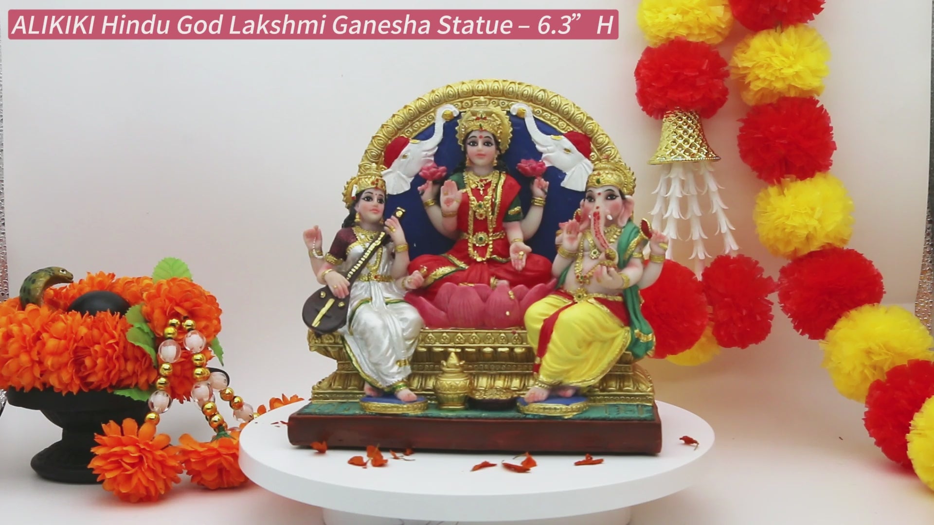 alikiki Lakshmi Ganesha Saraswati Statue 6.3”H Indian Laxmi Ganesh Idol Figure Murti Item Hindu Home Office Temple Mandir Shrine Altar Pooja Decor India Diwali Puja Gifts for Friends