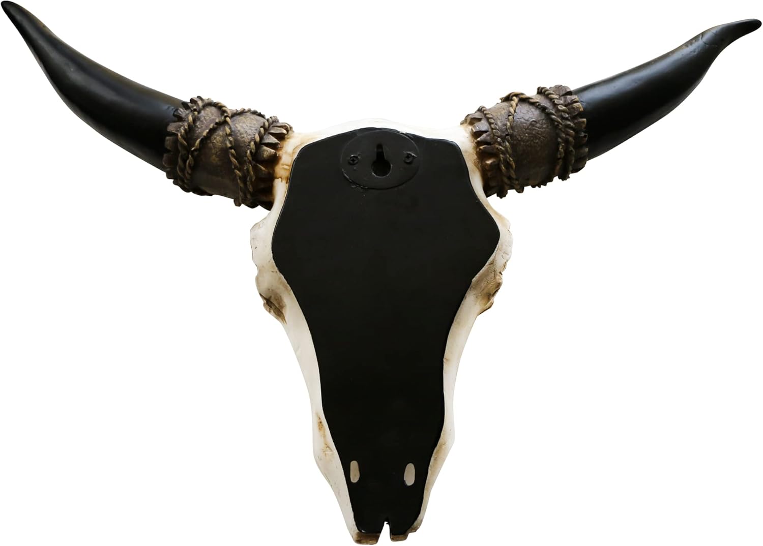 - Easy Installation - The long horned Buffalo Skull Wall Mount has a keyhole on the back for easy and secure installation. The skull measures 17.7 inches long from horn to horn, 11.8 inches high, 3.15 inches wide on the sides, and weighs 1.8 pounds. Cast in high-quality resin, sturdy to the touch.