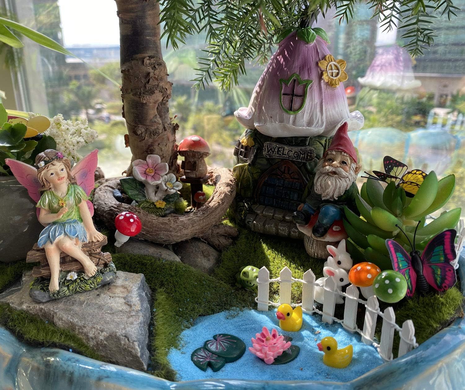 - Garden gnome and fairy Figurine for Fairy Garden Accessories. They are made from good quality durable resin, hand painted, sun protection coating and waterproof.
