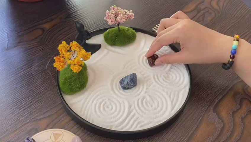 - Reduce stress at work:Put this large zen garden on your desk. Now, when you do something stressful, you can put on a chakra bracelet to calm yourself down by raking the rock garden. As you focus your attention on repetitive body movements, you can allow your brain to escape the stresses of everyday life.