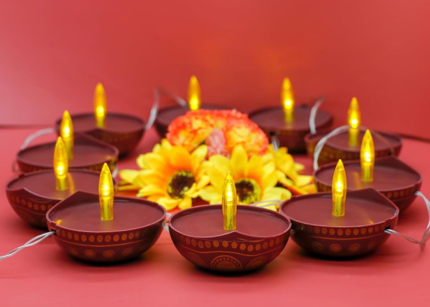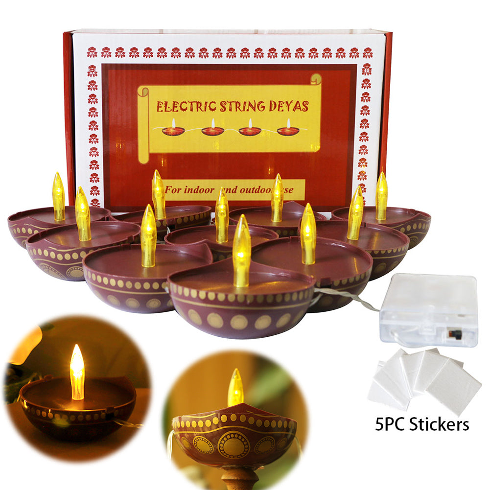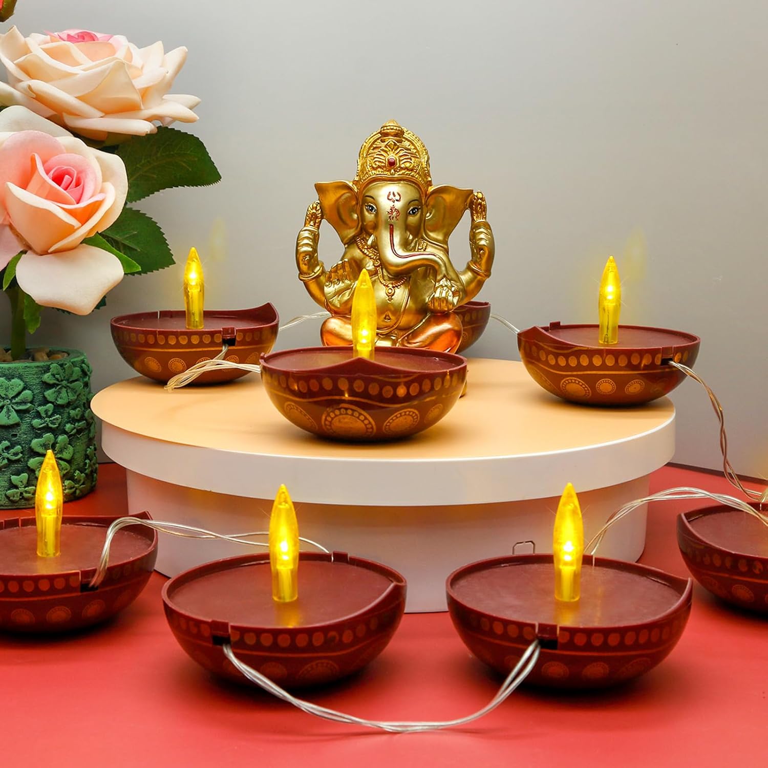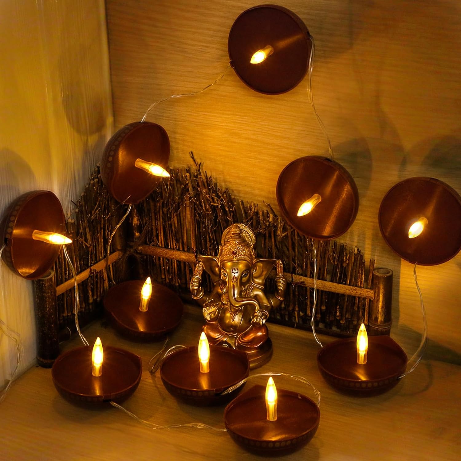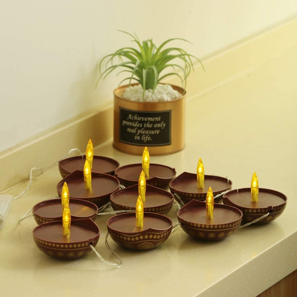 Diwali Diya String Lights - Diwali Gift Decor 10PCS LED Deepawali Battery Operated Diyas Indian Pooja Room Home Office Mandir Puja Gifts Hindu Wedding Light