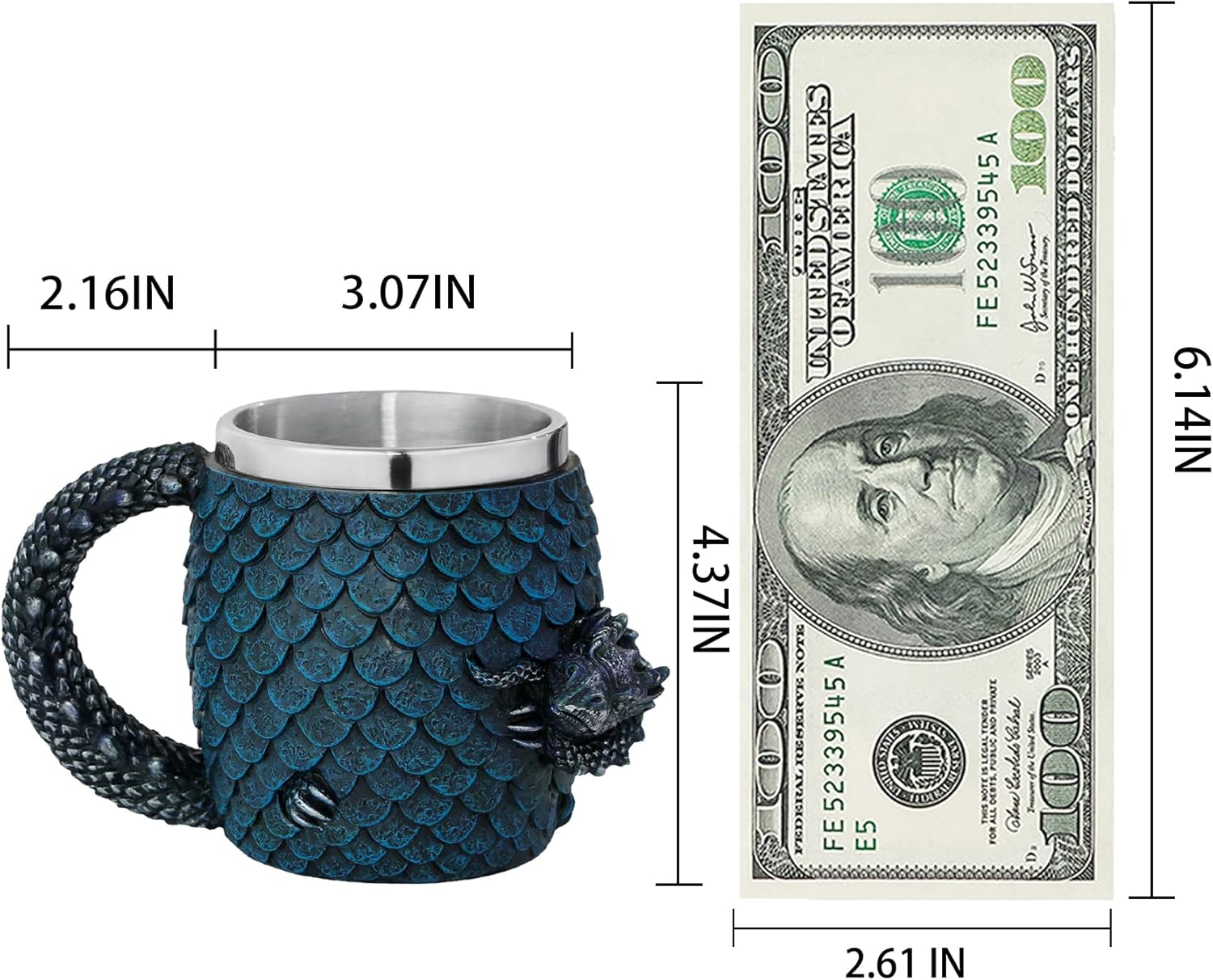 - High-quality material - using 304 edible stainless steel liner, safe to drink, durable and hygienic, with a round mouth. Hand wash only with a warm cloth. The outside of the wine glass is made of high-quality resin and is 6.8 inches high and 3.1 inches long, and it can hold up to 14 ounces of your favorite cold beer, coffee, tea or even water or soda. Excellent choice