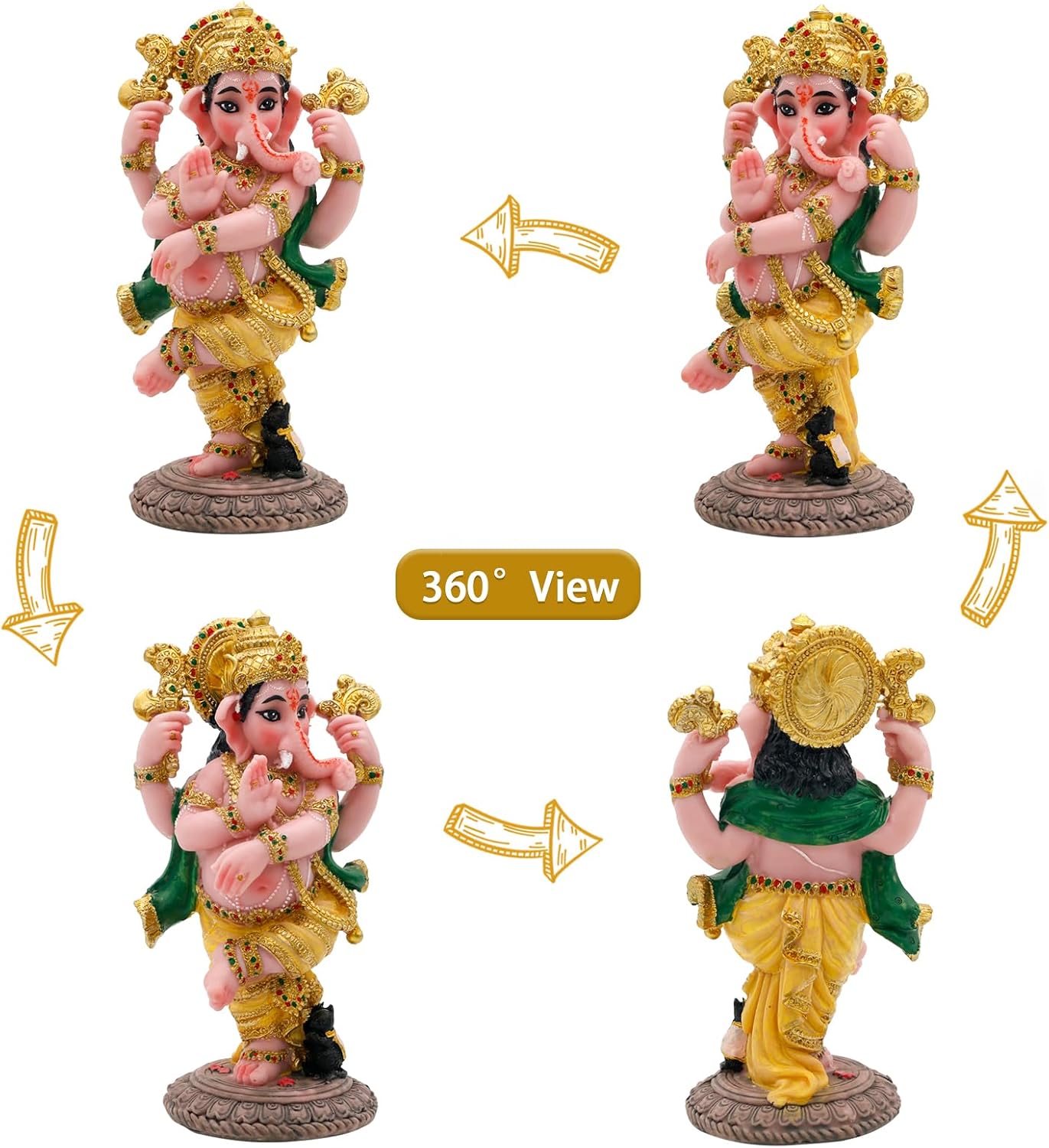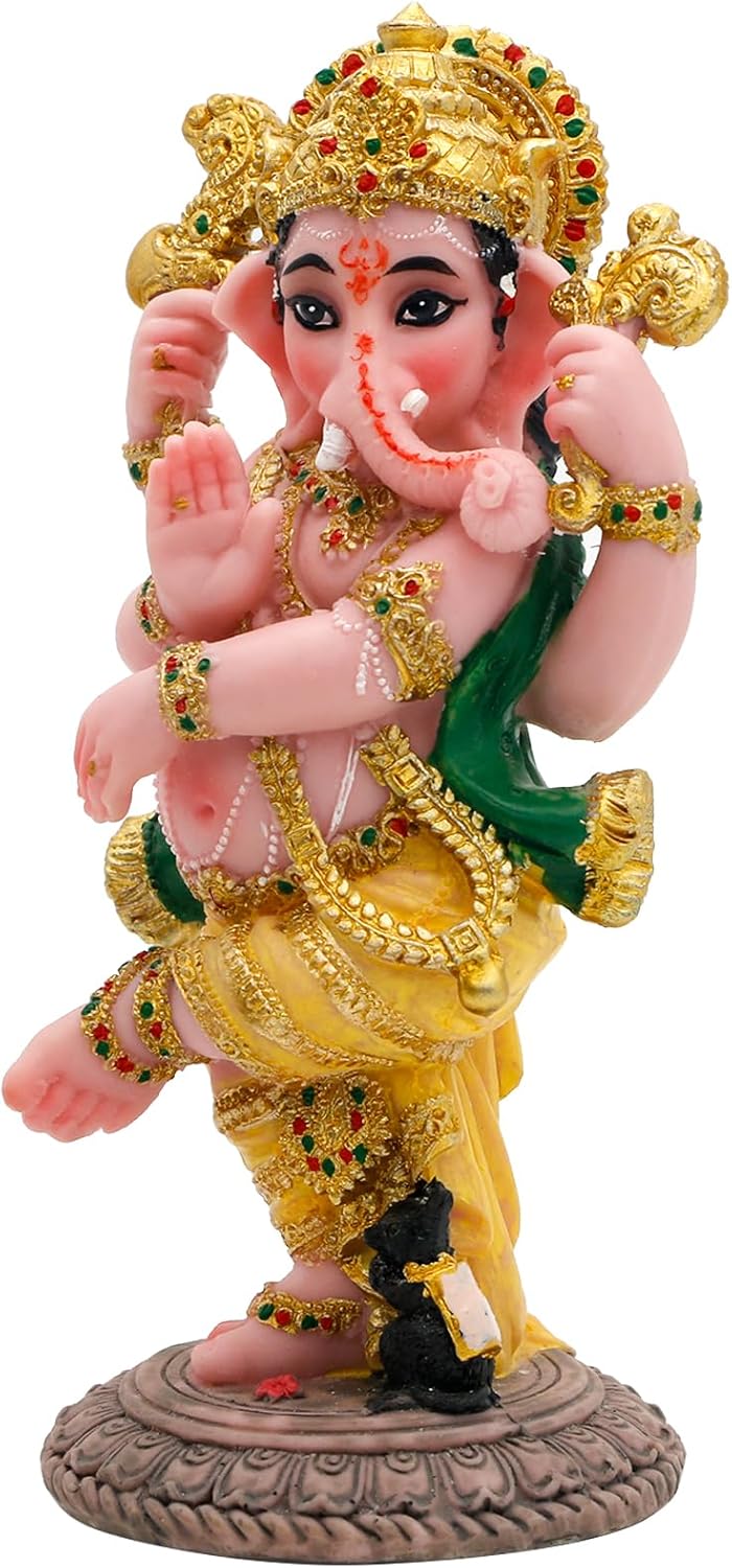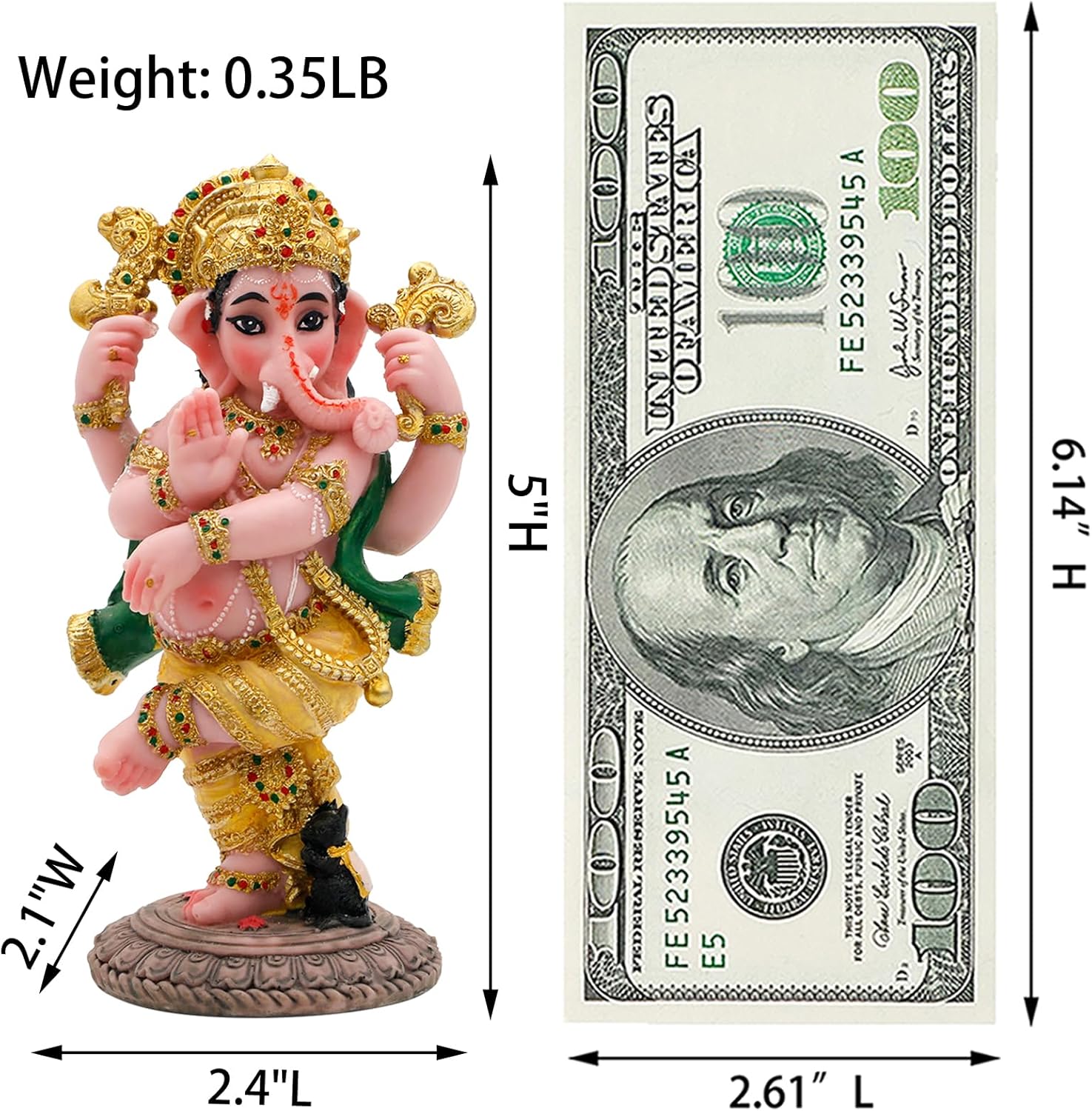 Indian God Ganesha Idol Statue - 5”H Hindu Dancing Ganesh Murti India Ganapati Pooja Item Home Office Temple Mandir Shrine Altar Diwali Puja Spiritual Decor Ideal Gifts for Indian Friend Relative