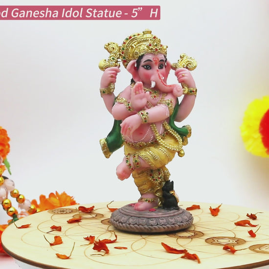 - Exquisite Craftsmanship Hindu Murti Pooja Item: This 5-inch dancing Lord Ganesha Idol statue beautifully captures the joyful essence of the deity, showcasing intricate details and vibrant colors that reflect the artistry of skilled Indian artisans.