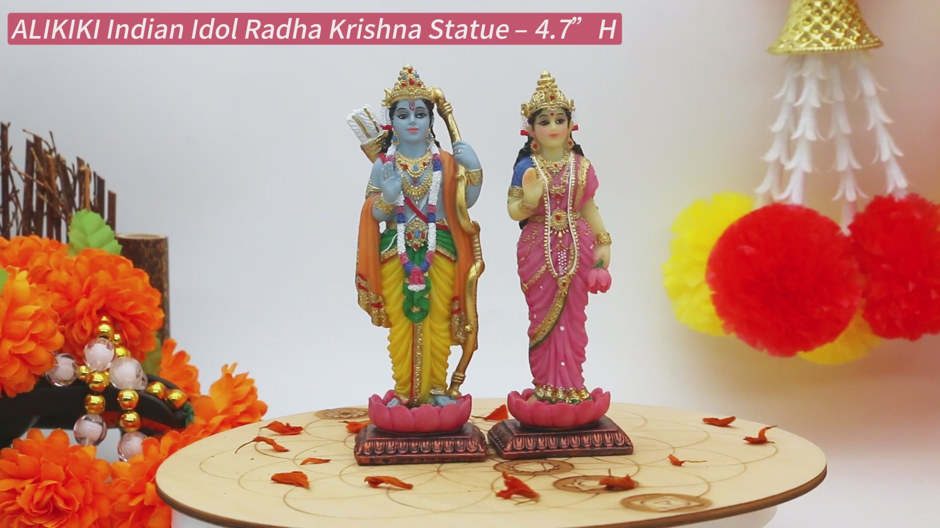 - Exquisite Craftsmanship Hindu Murti Pooja Item: These 4.7-inch Radha & Lord Krishna set statues set depict the divine couple standing gracefully on a lotus, with Radha standing beside Krishna, beautifully capturing their divine love.
