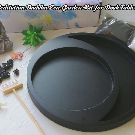 Meditation Buddha Zen Garden - Sun Moon Zen Garden Kit for Desk - Yin Yang Chakra Rock Sand Garden Shine Altar Zen Decor Gifts for Adult w/Rake Accessories Healing Crystal Succulent