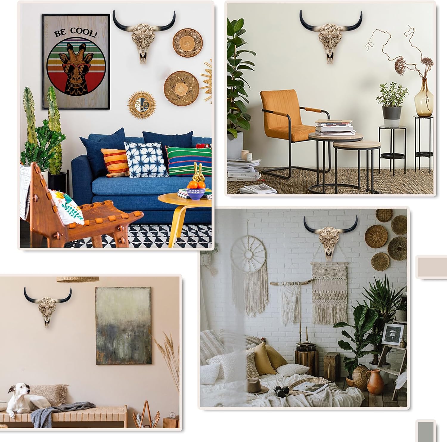 - CREATIVE AND UNIQUE HOUSEWARE GIFT--This bull skull wall hanging will complement any bohemian, western, southwestern, farmhouse or country themed home decor! It's also great as a housewarming gift, birthday gift for family or friends! It also makes a great gift for animal lovers or those who appreciate the natural beauty of the American West.