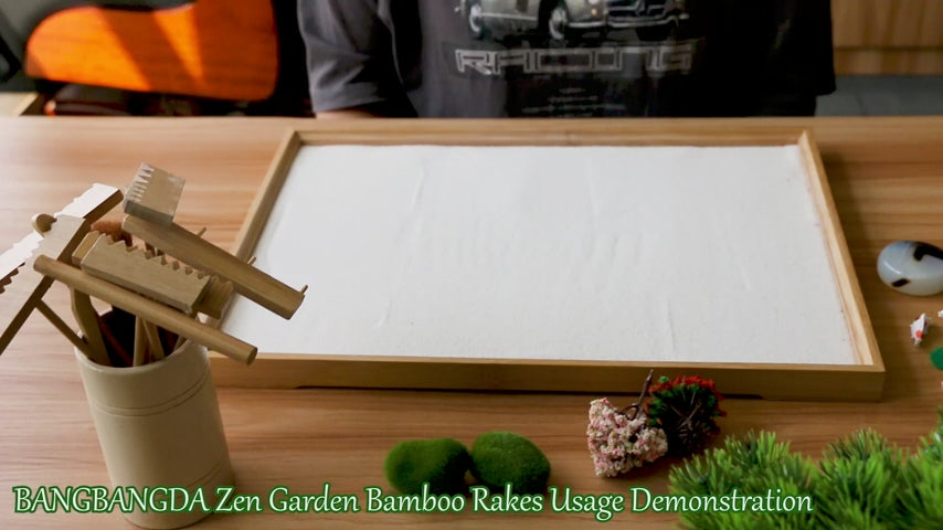 - Create Serene Patterns with this Desktop Zen Garden Kit Set: Our Japanese tabletop Zen garden decors,Zen Garden tools,Zen Garden Accessories Rakes set includes 9pcs mini bamboo zen rakes that allow you to effortlessly create intricate and soothing patterns in the Zen garden sand, promoting relaxation and mindfulness.